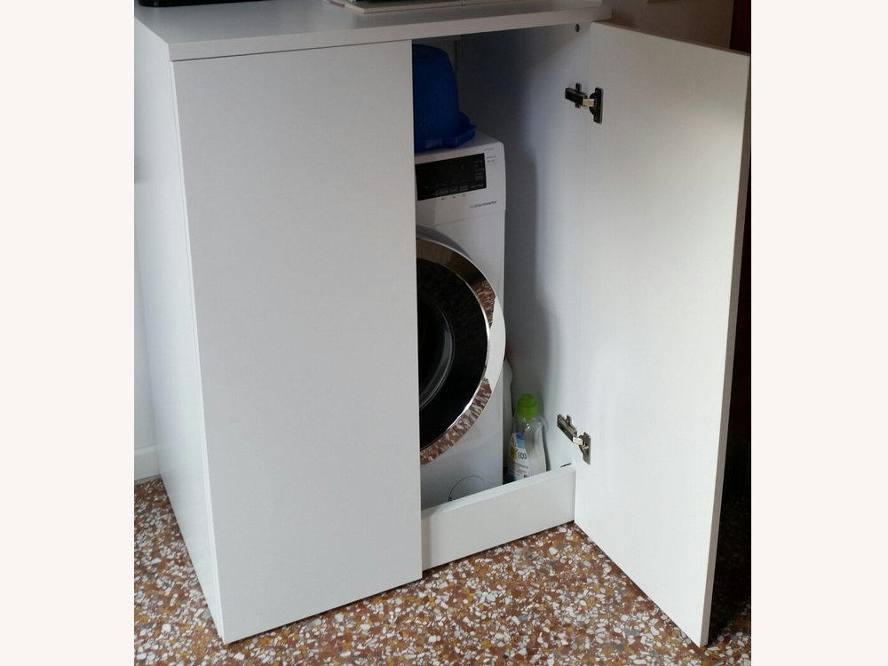 Per chi è alla ricerca di una soluzione più flessibile, proponiamo la base lavatrice asciugatrice. Questo mobile per lavatrice è pensato per adattarsi a diverse configurazioni di spazio, con la possibilità di aggiungere ripiani o armadietti sopra gli elettrodomestici. Personalizzabile nelle dimensioni e nel design, questa base consente una vera e propria trasformazione della tua area lavanderia.